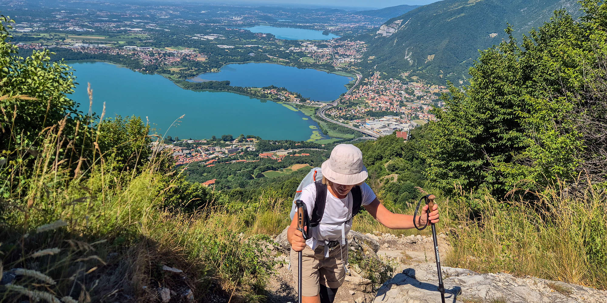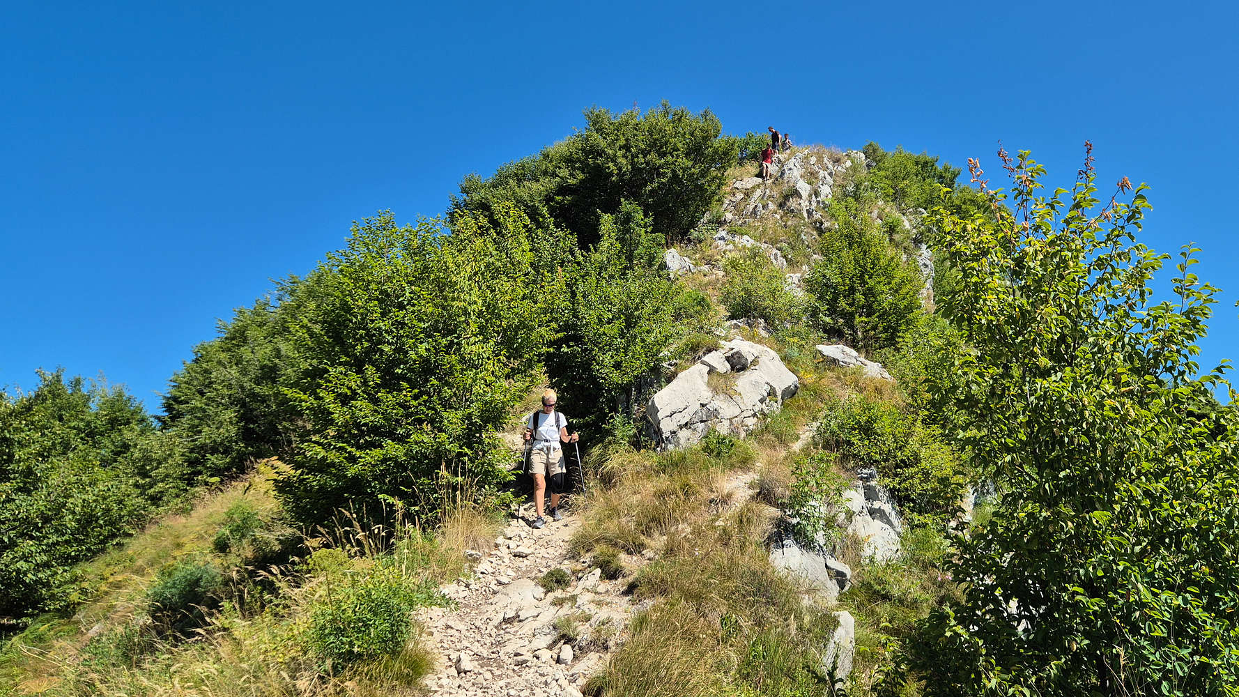 We continued onwards from Trovanti Col. at 800m following the wide dirt track making its way up. Slowly but surely the insane heat started to take a toll on us and we got passed by all the other parties making the ascent at the same time. Slowly but surely we reached the first limestone slabs, no more than 2-3m tall and not steep, but exceptionally slippery on account of the traffic. Past the slabs more switchbacks continue and are intermittent by two more smaller slab sections requiring some attention. While steep, the trail presented us little challenge, although the heat did. Past the final intersection with the N ridge the forest finally begins to clear and exceptional views towards the 3+1 Lakes of the Triangolo Lariano: Anonne Est & Ovest, Pusiano & Alserio. At this point the scorching sun briefly became bearable again as the summit cross came into view.