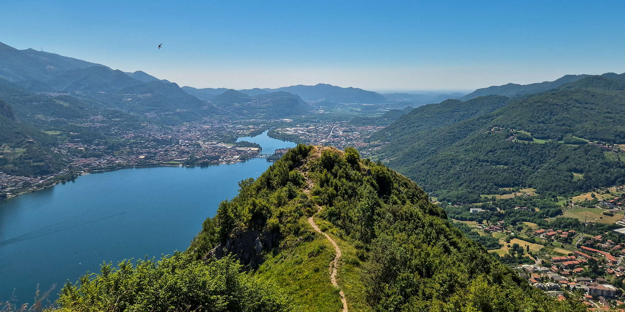 Eye-catching views towards San Michele 815m and Lake Como outflow.