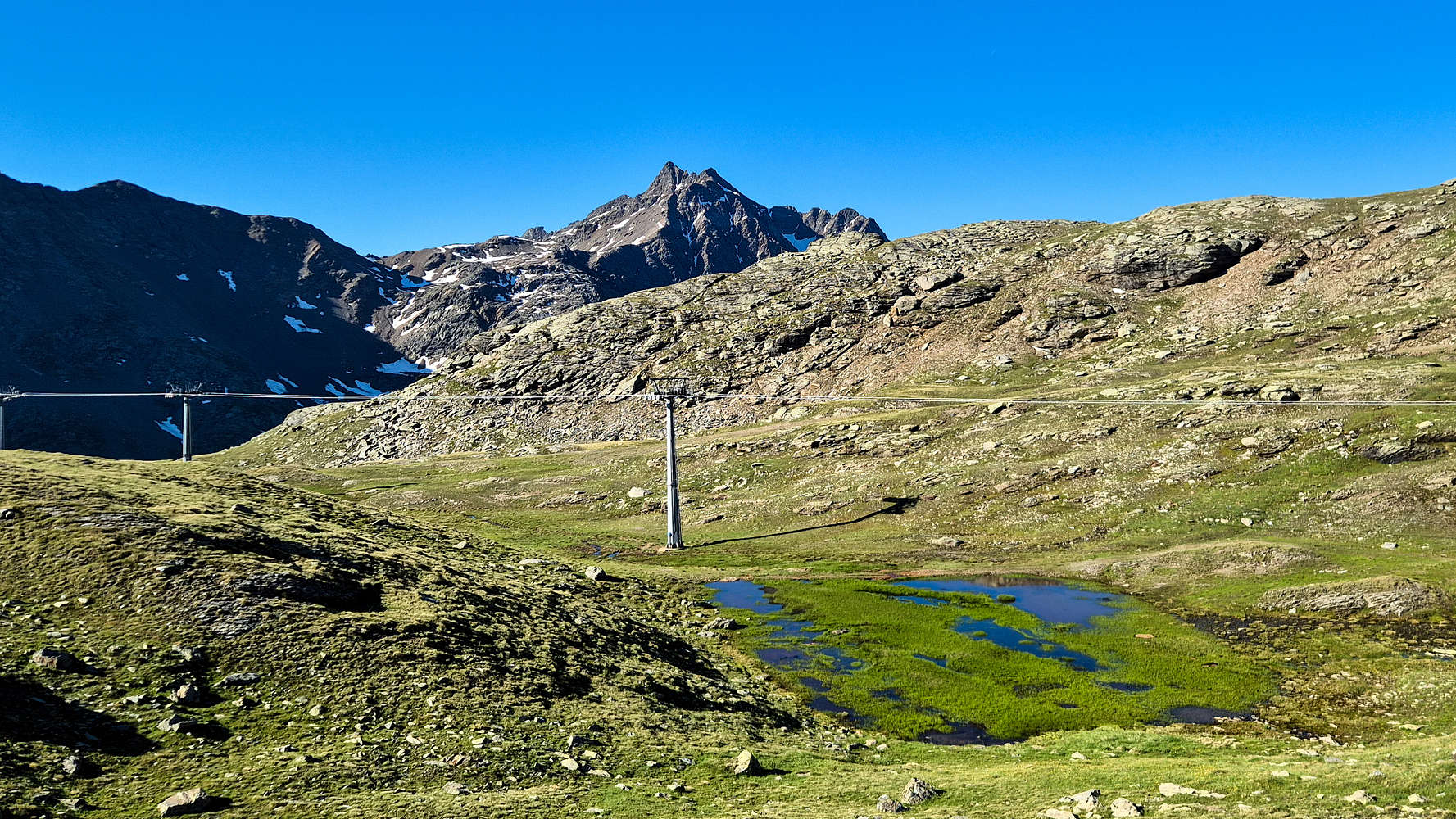 A seasonal lake below Laghetto dell’ Alpe, Monte Gavia 3,220m visible.