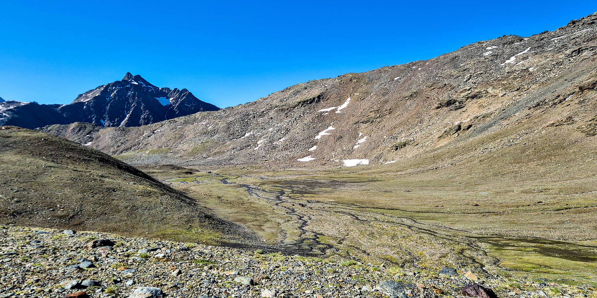 Val dell’Alpe from the foot of the upper moraine, view of Monte Gavia 3,220m.