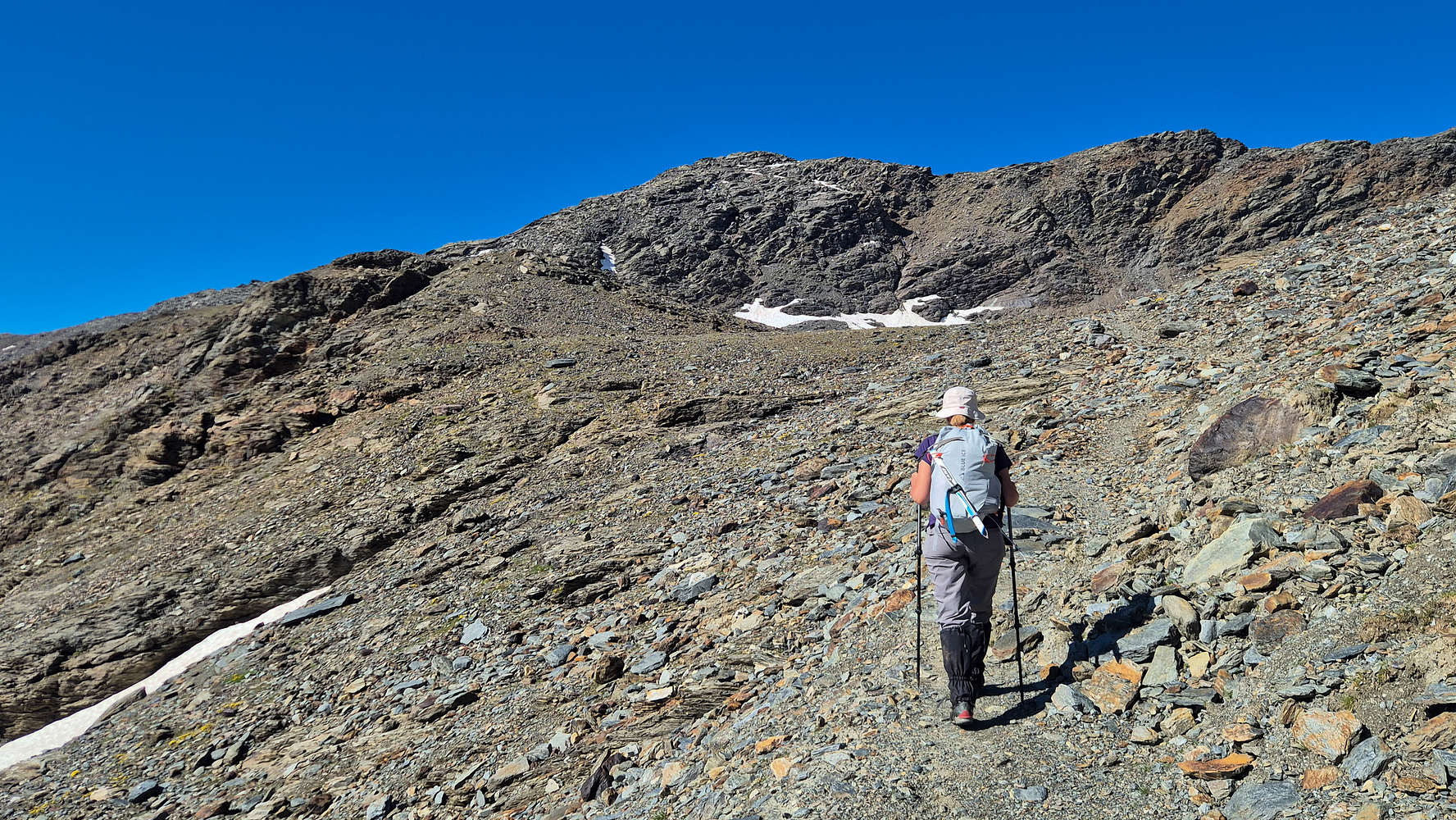 Terry ascending the switchbacks bellow the summit of Sobretta.