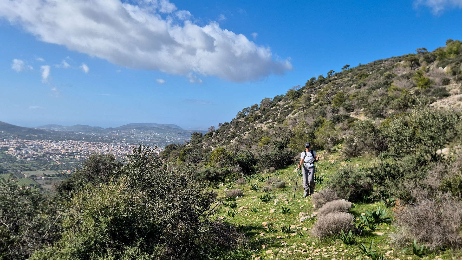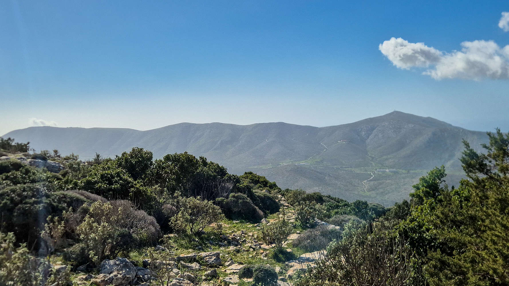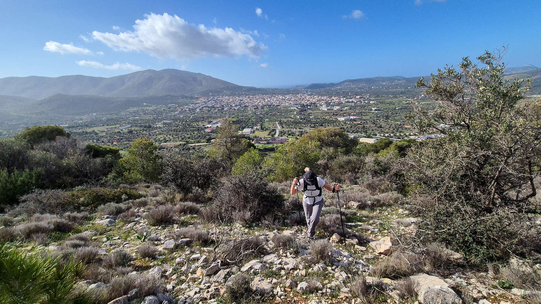 Ascending Merenda (614m) with a view of Kastro (429m).