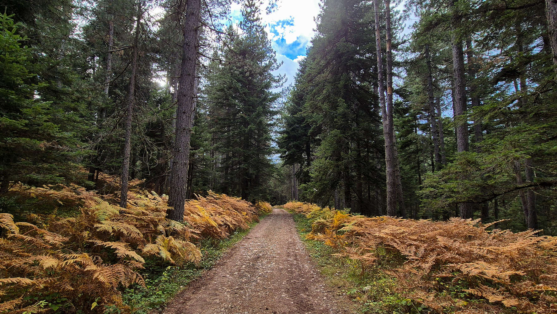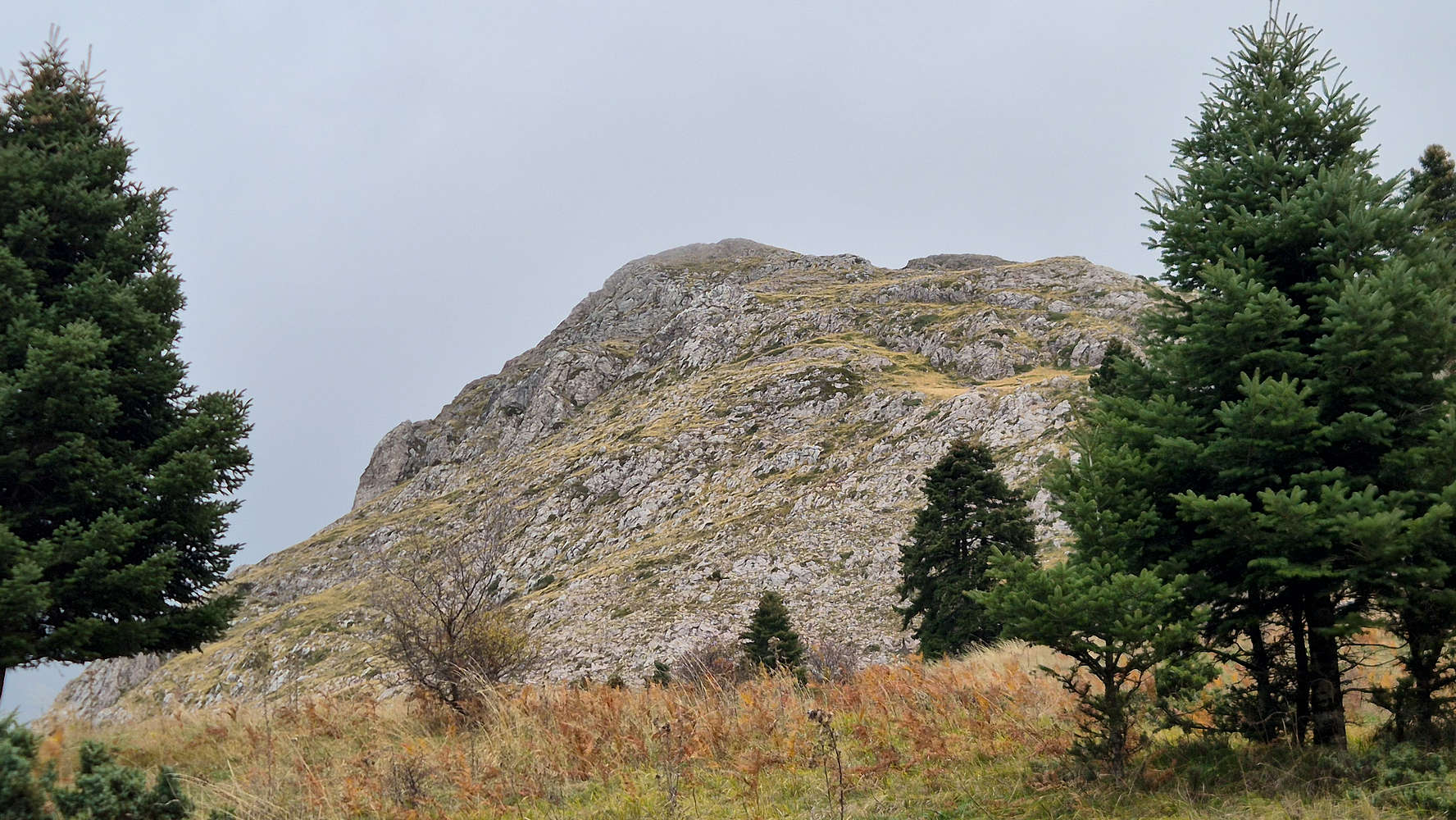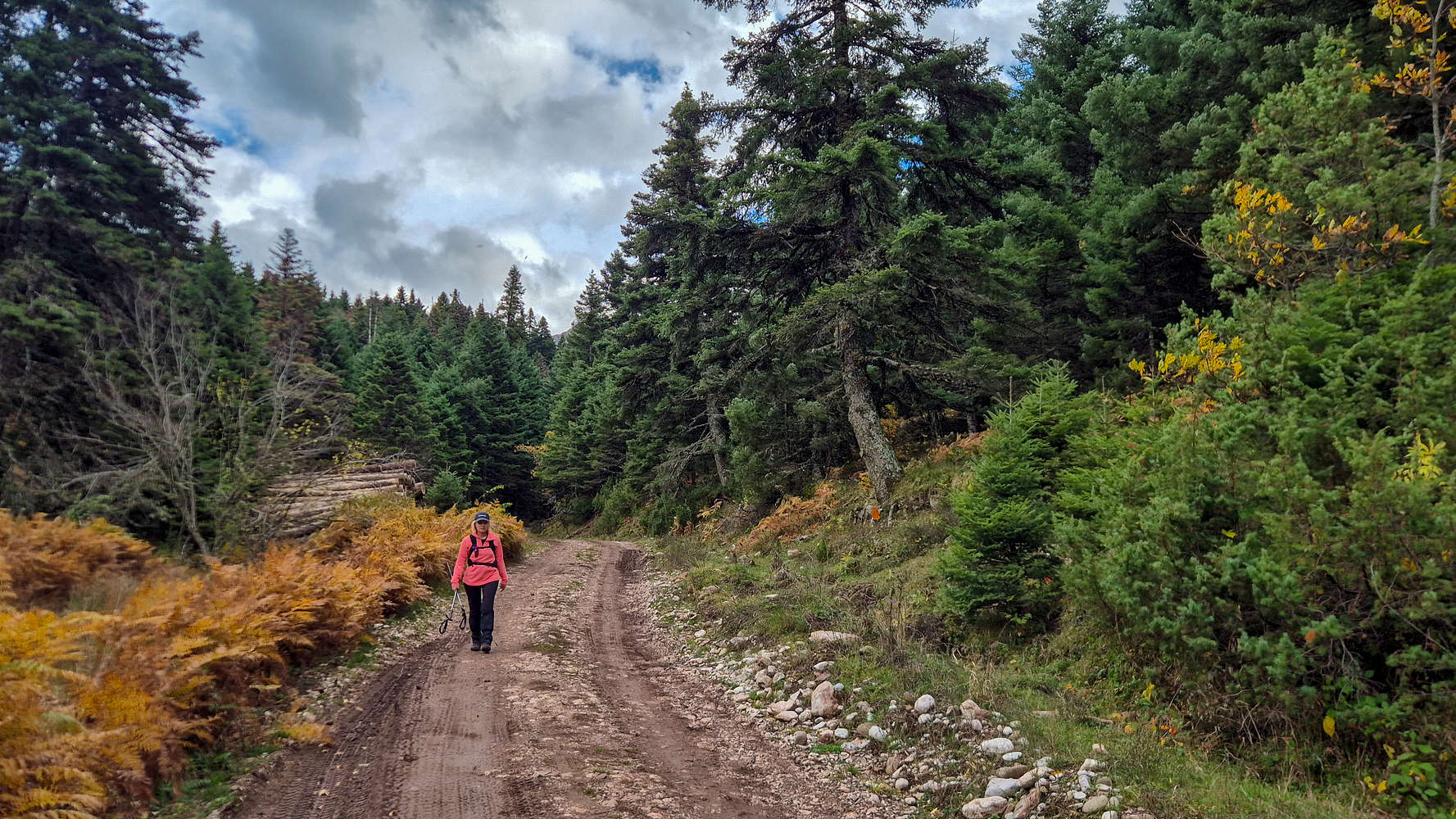 Fifteen minutes later, we reached the end of the track—where a hunter’s 4WD sat inexplicably parked. Though monotonous, this section let us ease into the relaxed autumn atmosphere of this beautiful mountain. Had we begun the day on Avgo (2,138m), things would have been very different. I was glad to be here