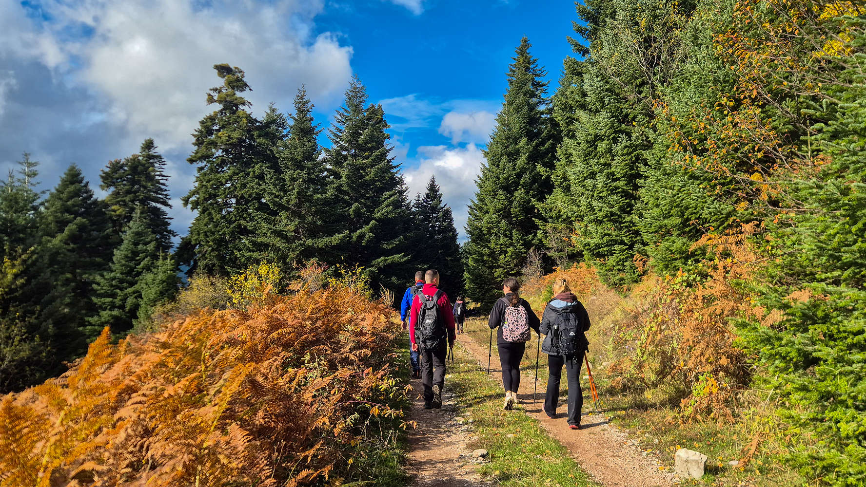 At 1,210m, our direct descent began. Here we met the region’s main tourist activity—ATV tours. Curiously, these noisy machines are allowed on the forest roads while cars are not, despite Koziakas (1,901m) being a protected Natura 2000 area.