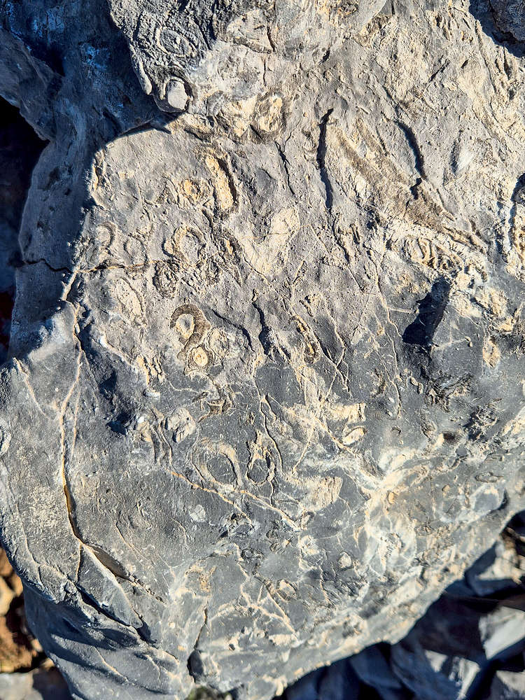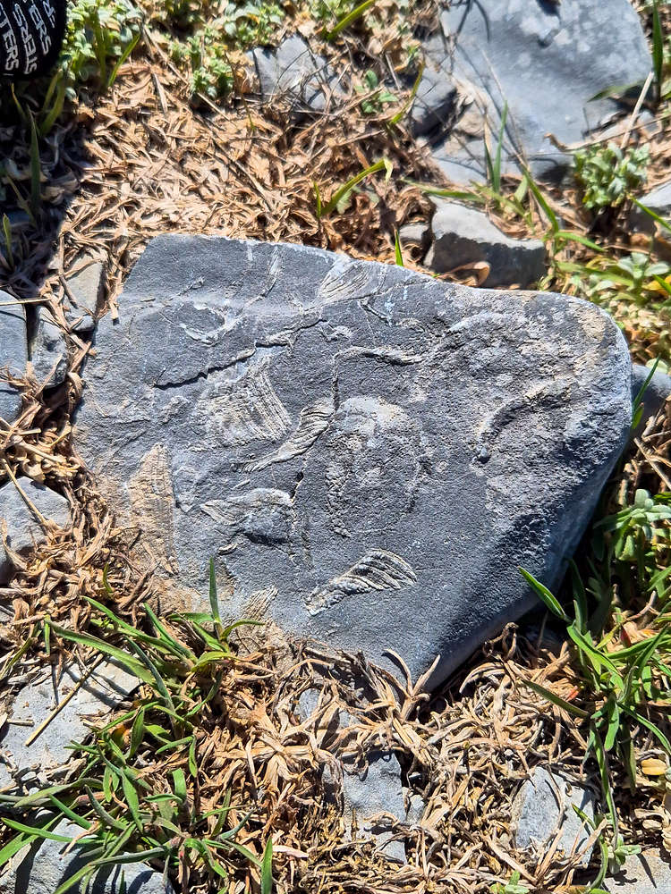 The Penteleia Massif (2,107m) is know for its visible fossil-beds on the dominant Limestone layer. The density of low quality sea-life fossils is truly astounding, providing a glimpse into the deep past of the region. The fossils are of small and medium size sea life which inhabited the shallow warm sea, with several islands, in which this limestone slab lay, under the water. Geological action uplifted this limestone over 2,000m up but the fossils still remain. It is illegal to remove any samples of fossils from the mountain as it is part of the UNESCO Chelmos-Vouraikos Geopark.